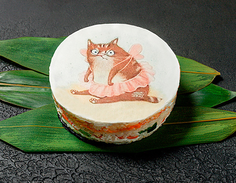 Мини тортик с лососем, огурцом, авокадо, сливочным сыром, крабовым миксом, рисом, нори и фирменным соусом